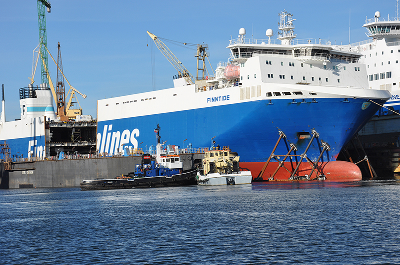 Remontowa S.A. shipyard in Gdansk has finished the first lengthening project for Finnlines. FINNTIDE (2012) has been lengthened by 30m in less than two months, adding 1,000 lane meters of garage deck.