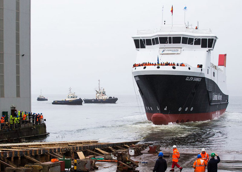 Watch the moment the GLEN SANNOX was launched from the slipway at Ferguson Marine in Port Glasgow. She will serve CalMac’s Ardrossan – Arran ferry route. She is going to be the first LNG ferry in the UK to run on liquefied gas and was launched by Scotland’s First Minister Nicola Sturgeon on November 21.