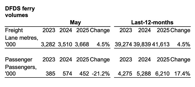 For the last twelve months 2025-24, the total transported freight lane metres increased 0.1% to 41.5m from 41.4m in 2024-23 and decreased 2.1% adjusted for route changes.