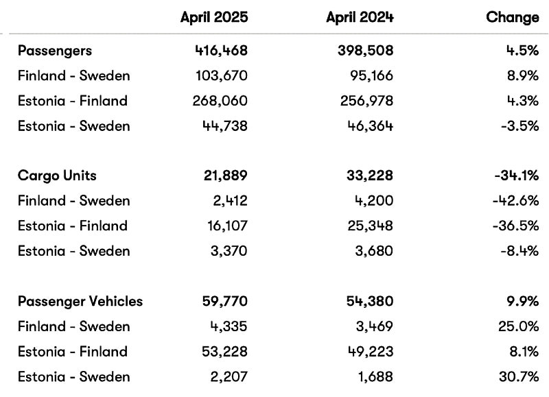In April 2025 AS Tallink Grupp transported: