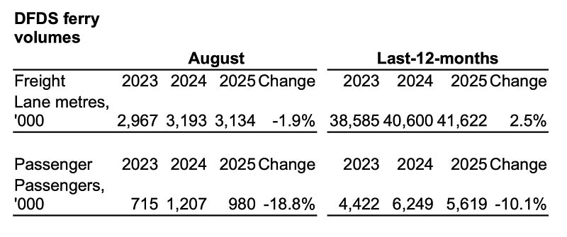 Freight volumes in August 2025 totalled 3.1m lane metres, 1.9% below 2024 and 3.9% lower when adjusted for route changes. Year-to-date growth was flat at 0.1% and -1.2% adjusted.