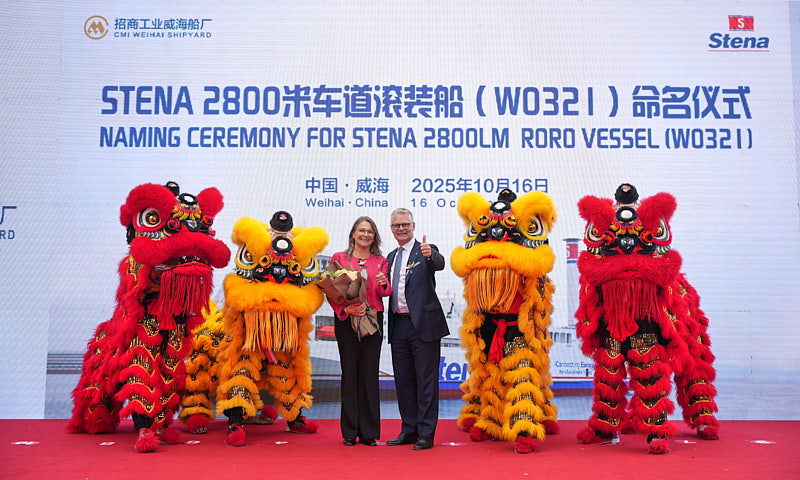 Stena Line’s newest vessel, STENA CONNECTA, was officially named at the CMI Shipyard in Weihai, China, on 16 October. She will soon begin her maiden voyage to her new home port on the Irish Sea.