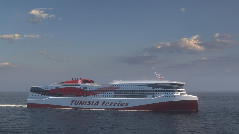 The new vessel is intended to join the Tunisia Ferries fleet, reinforcing maritime links between Tunis, Barcelona, Genoa and Marseille.