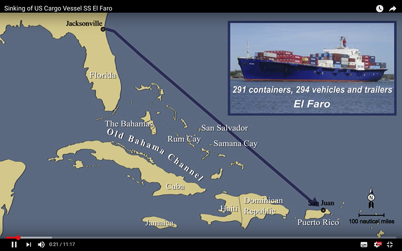 The US National Transportation Safety Board has issued a video which explains the facts and findings of the sinking of Tote’s con-ro S.S. EL FARO on 1 October 2015.