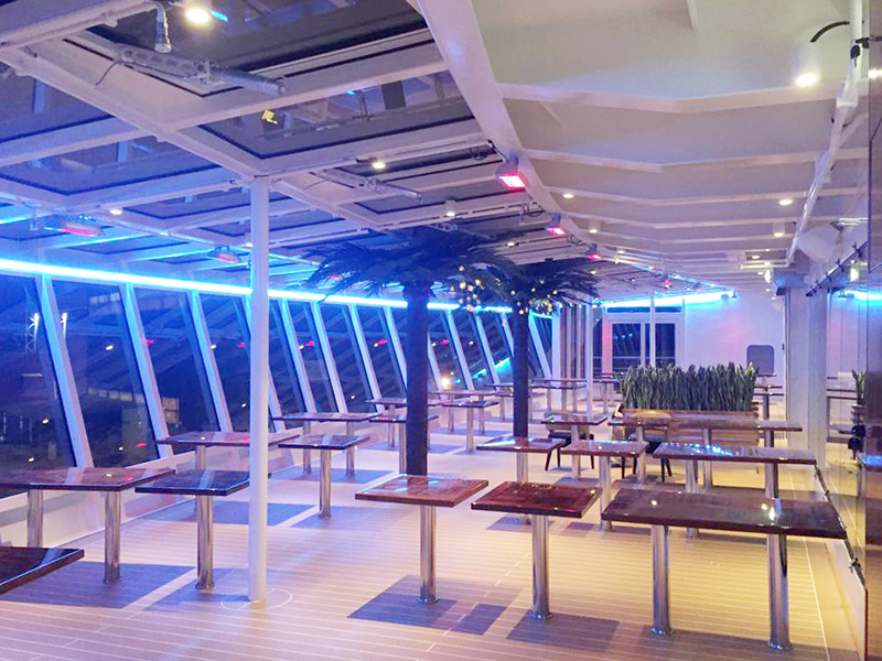 The ship’s interior has been upgraded to almost yacht-like standards. Cabin and suite capacities have been increased on the top deck and a new winter garden restaurant was created aft.