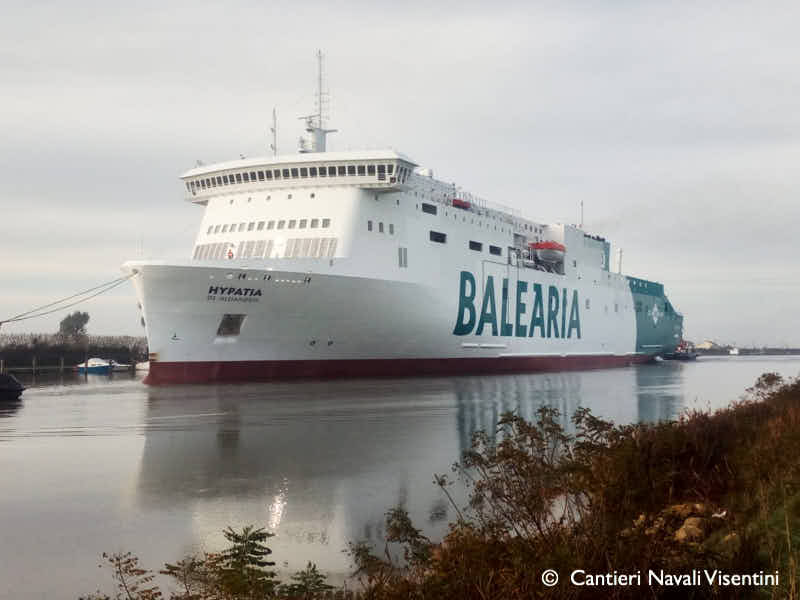 The newbuilding hull n° C224 and already named HYPATIA DE ALEJANDRIA is set to be delivered to the Spanish ferry company Baleària Eurolineas Maritimas SA in the first two months of 2019.