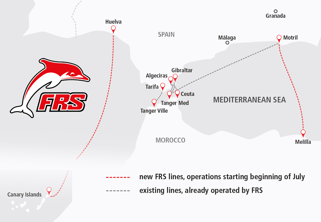 FRS increases its Spanish routes with the operation of the Motril-Melilla and Huelva-Canary Islands lines. This will start in July.