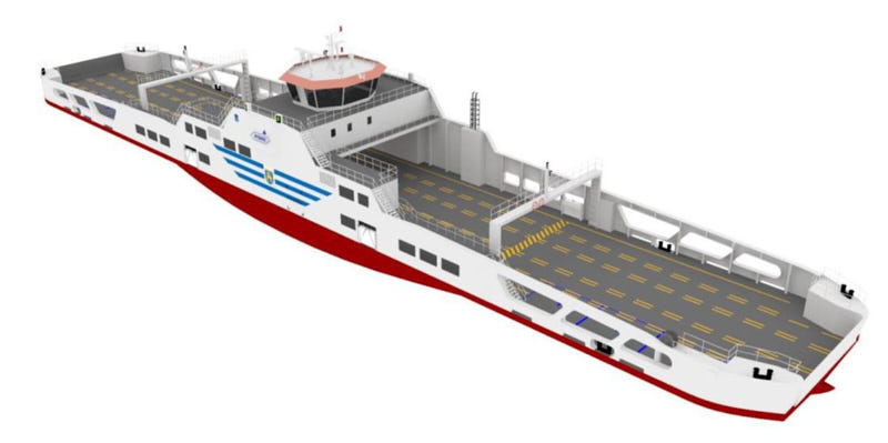 The electric hybrid ferry will be 100.5 meters long, 17.4 meters wide and will accommodate 90 cars.