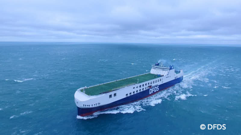 DFDS has released this aerial photo of the first Chinese ro-ro undergoing sea trials.