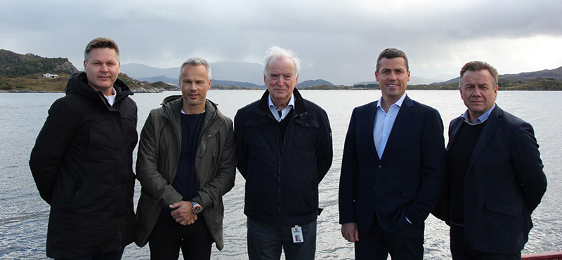 Photo: Design manager Arve Leine of Havyard Design & Solutions AS, Sales Director Gisle Vinjevoll Thrane of Havyard Design & Solutions AS, chair of the board and owner Per Sævik in Havila Kystruten AS, CEO Arild Myrvoll of Havila Kystruten AS and CEO Geir Johan Bakke of Havyard Group ASA.