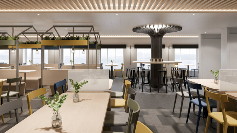 The interior designs of the new ferry, which will operate between Vaasa in Finland and Umeå in Sweden, are being finalized. Kudos Dsign has produced the interior design plan for Wasaline’s new ship.