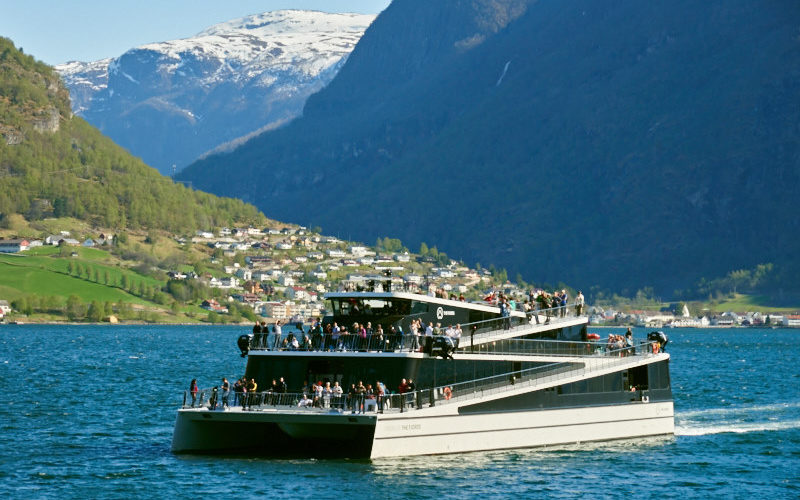 The year 2016 saw the introduction of VISION OF THE FJORDS, a hybrid tourist ferry built for the Flåm-Gudvangen route (Gudvangen is at the end of the Nærøyfjord). She was commissioned by The Fjords DA, a company co-owned by Norway’s largest ferry company Fjord1, and Flåm AS, which works to promote tourism opportunities.