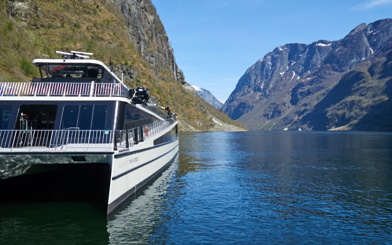 The situation at the Nærøyfjord is different. Cruise ships don’t enter this small fjord. They’d rather call at Flåm, in the Aurlandsfjord, and have their guests booking an excursion with one of the tourist boats. A lot of these are old car ferries, now used for passengers only.