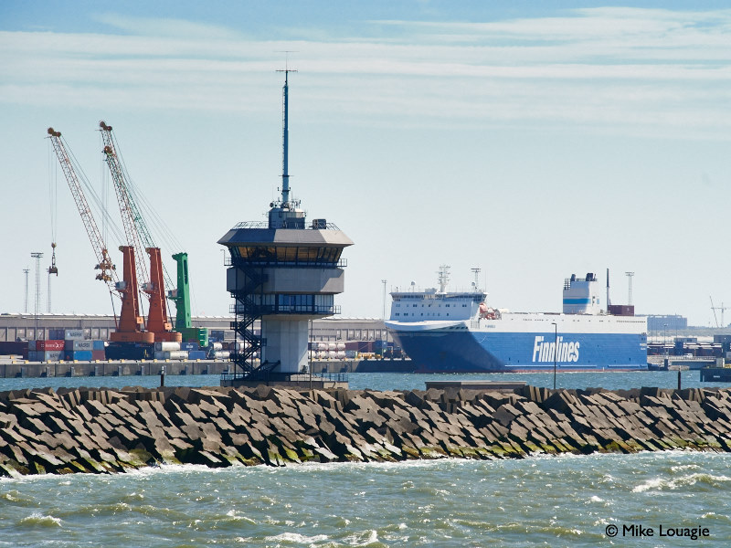 Being on a cruise ship allows for different photographic angles. The FINNSEA is seen here in Zeebrugge, coming from Tilbury and bound for Bilbao.