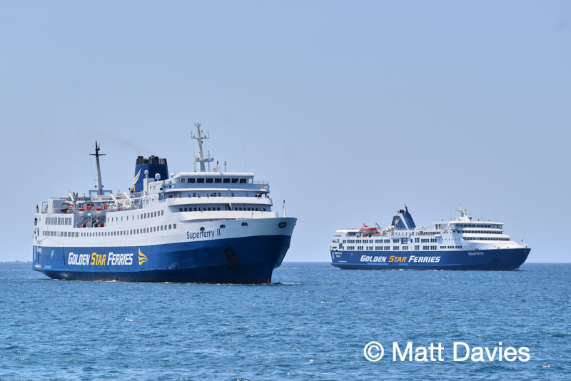 SUPERFERRY 2 and SUPERFERRY of Golden Star Ferries arrive at Paros. The vessels operate a daily sailing Rafina – Andros – Tinos – Mykonos – Paros – Heraklion. Each day one vessel sails in each direction and both vessels meet in Paros.