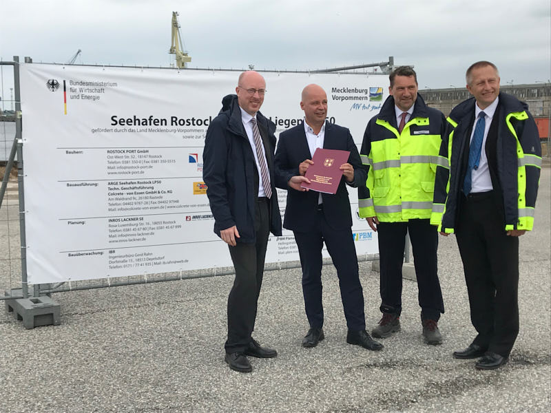 Photo: State Infrastructure Minister Christian Pegel, 1st Deputy Mayor of Rostock, Dr. Ing. Chris Müller-von Wrycz Rekowski, Rostock Port Managing Director Jens A. Scharner and Dr. Ing. Gernot Tesch.